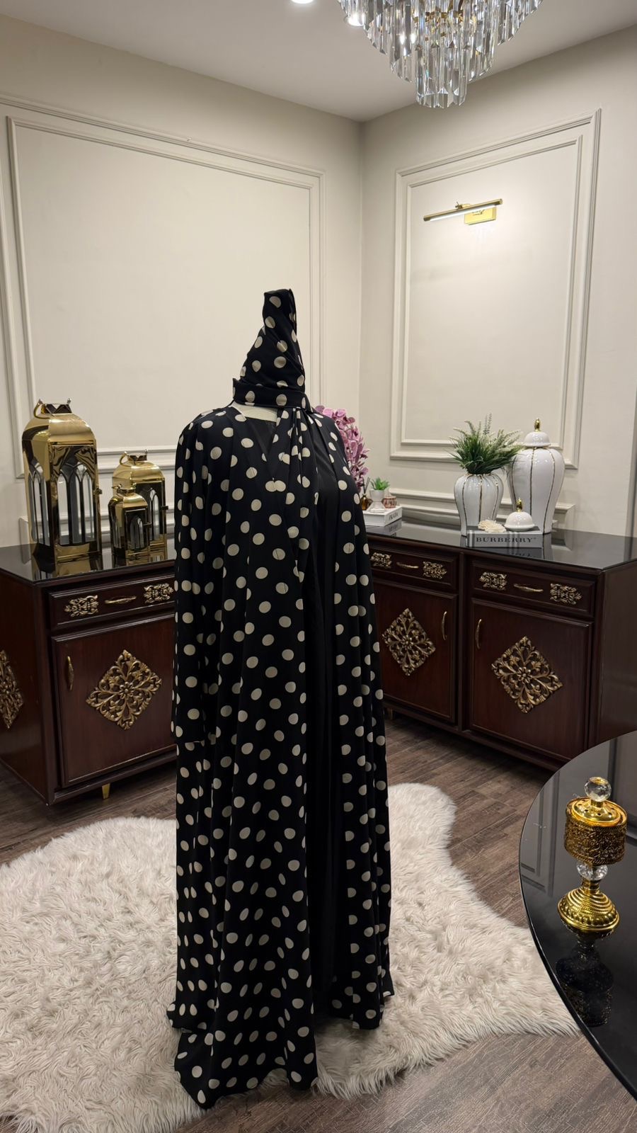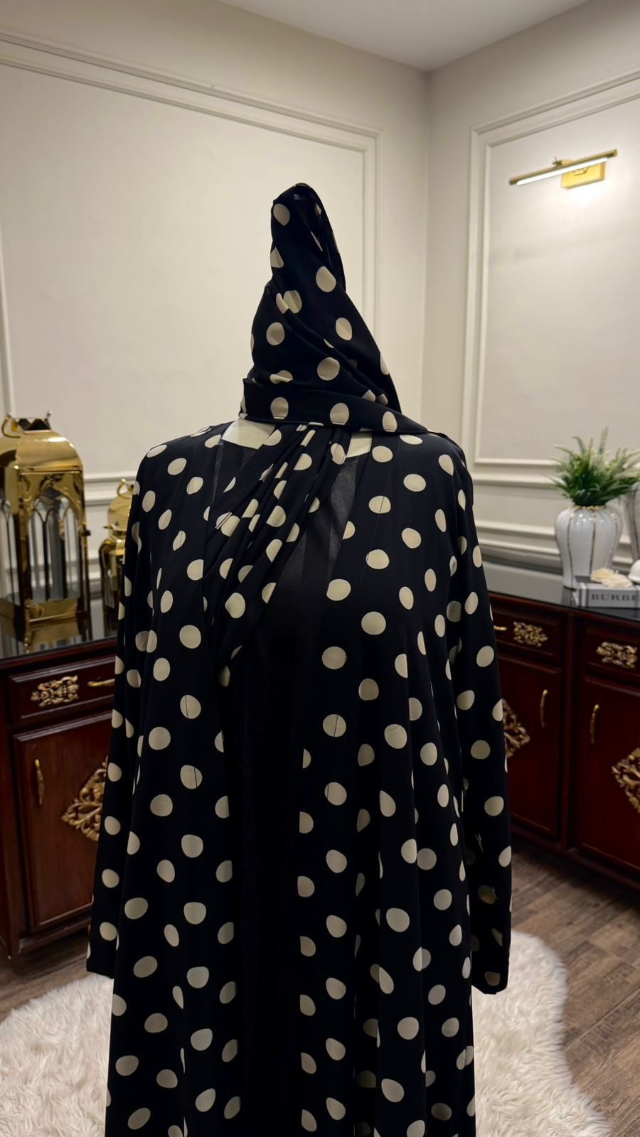 A statement piece that blends timeless polka-dot charm with a modern, flowing silhouette for an effortlessly sophisticated look.